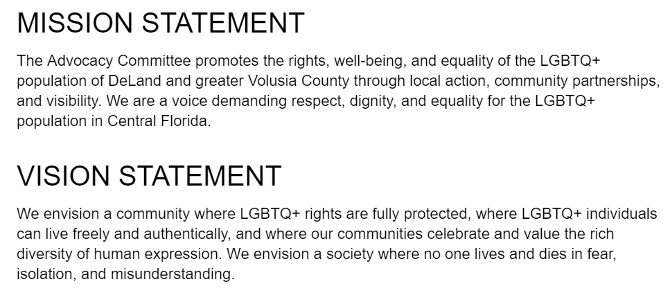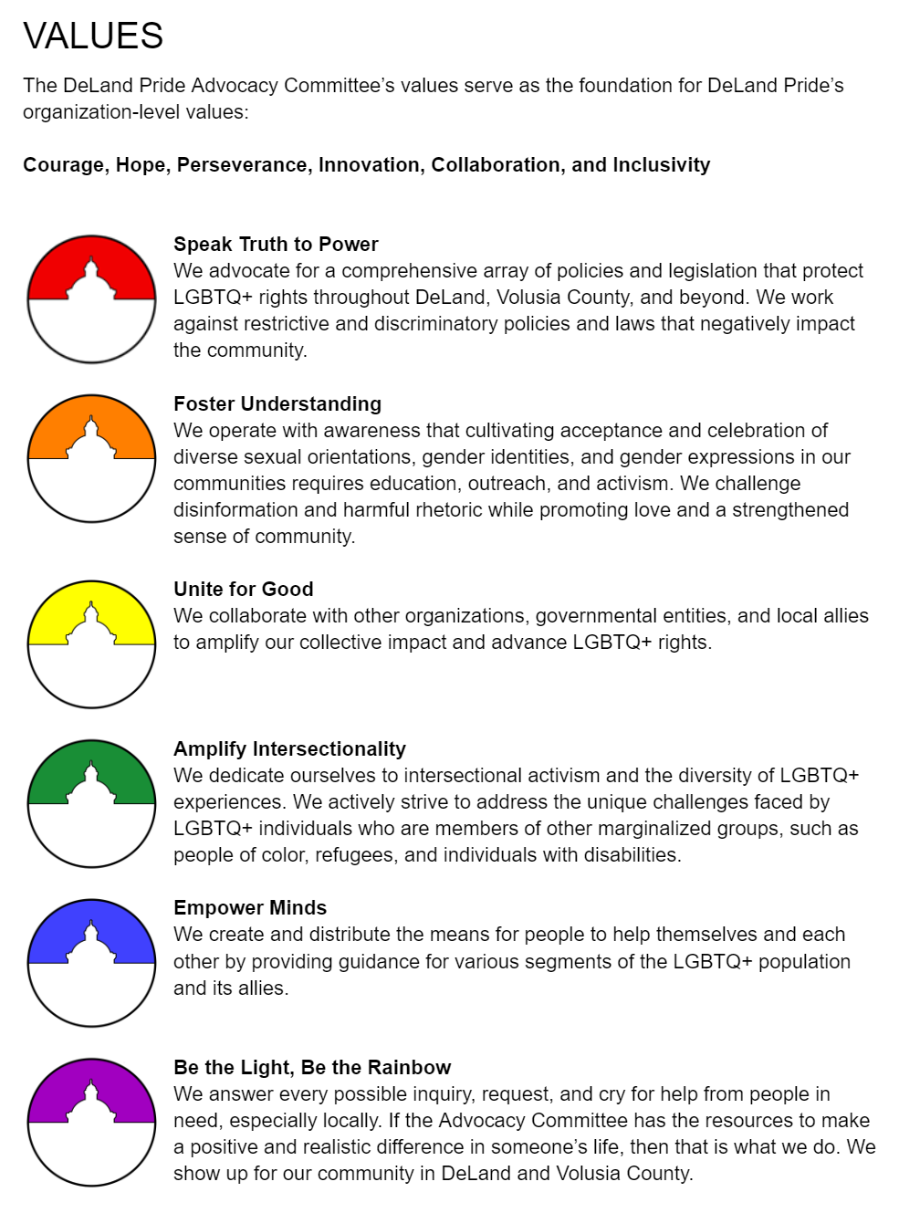 As an Advocacy Co-Director for Volusia Pride and an Advocacy Co-Chair for DeLand Pride, I have organized multiple projects and events.