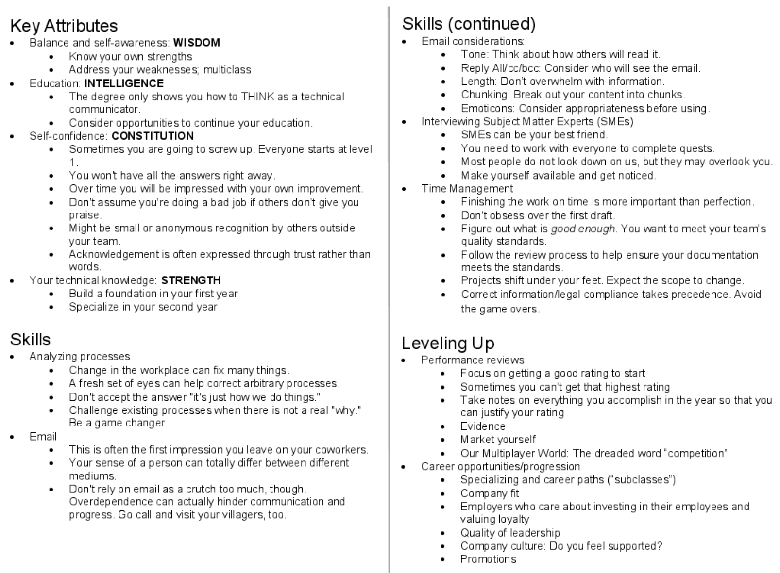 Our presentation leveraged personal experience to describe what to expect and how to thrive during the first year working as a technical communication professional.