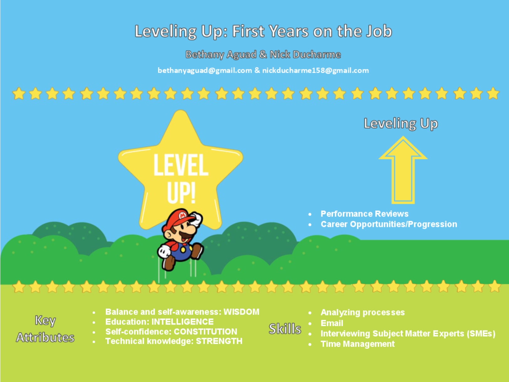UCF hosted the same general event concept from 2016 again in April of 2017. It remained free to attend so that students would be encouraged to join. With another year of career experience under our belts, we decided to revise our presentation and offer it one more time. This time, our presentation title was Leveling Up: First Years on the Job.