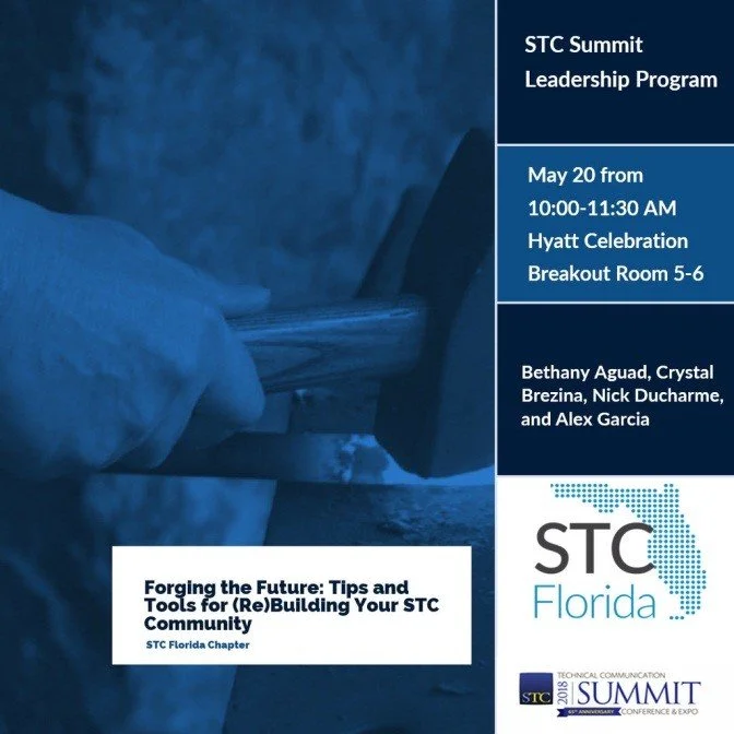 In May of 2018, STC Florida had the honor of being the host chapter for the 2018 Technical Communication Summit, an international gathering a technical communicators held annually. This provided me (alongside three other core members of our chapter) with the unique opportunity to present not once, but twice during the event.